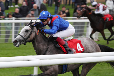 Nach zwei Siegen bei zwei Starts in Köln und Hoppegarten versuchte sich der Schützling vom Rennstall Gestüt Hachtsee heute erstmals in einem Black Type-Rennen im französischen Chantilly. Der dreijährige Wallach zeigte ein beherztes Rennen mit unserem Auszubildenden Esentur Turganaaly Uulu im Sattel und wurde vierter.